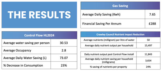 The pilot proved that significant average savings on both water and gas could be achieved using Control Flow HL2024® devices, saving householders up to £360 a year on their water and energy bills.